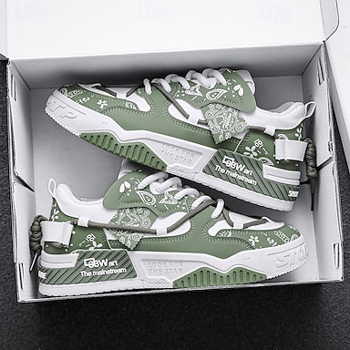 Baskets de sport vertes et blanches pour hommes, chaussures de sport confortables à lacets pour une utilisation décontractée et les activités de plein air