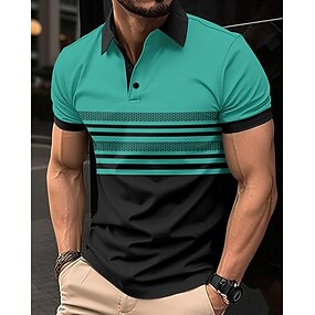 Homme Rayé Polo de rugby Manche Courte Polos Chemises à Col Occasionnel École Extérieur Athleisure Tenue quotidienne Impression 3D Été Vert