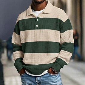 Homme Graphique Chemises Polo Gaufre manche longue Polos Chemises à Col Occasionnel Tenue quotidienne Boutons Printemps Automne Hiver Bleu Marron Vert