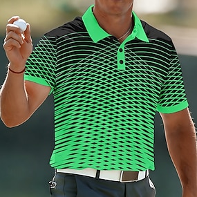Homme Géométrique Golf Polos de Sport Manche Courte Polos Revers Occasionnel Athleisure Impression 3D Boutons Printemps & Été Rouge Vert