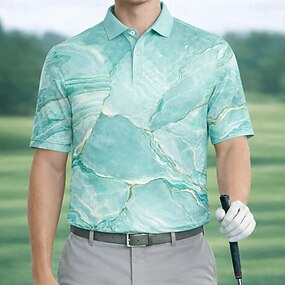 Homme Marbre Golf Polos de Sport Manche Courte Polos Chemises à Col Occasionnel Athleisure Boutons Printemps & Été Bleu Violet Vert