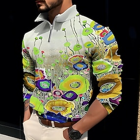 Homme Floral Imprimés Photos POLO Polo zippé Tee Shirt Golf manche longue Chemise Mao Extérieur Plein Air Jaune Rose Claire Bleu Violet Vert Zippé Imprimer Vêtement Tenue Mode Vêtement de rue Design