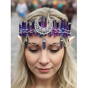 Couronne de Cristal Boho de Mardi Gras pour Femmes - Bandeau en Quartz Mystique et Lune en Plusieurs Couleurs - Parfait pour les Costumes de Carnaval et de Mascarade