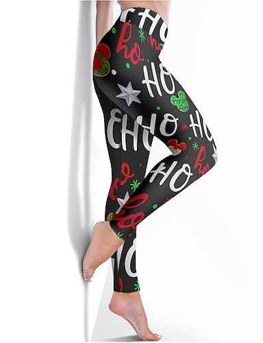 Femmes Pantalon de yoga Lifting des fesses Contrôle du ventre Taille haute Entraînement en salle Course Fitness Leggings raccourcis Noël joyeux Noël Noir Automne Des sports Tenues de Sport Haute