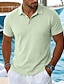 Polos en lin pour homme, style décontracté, manches courtes, à boutons, coupe classique, coloris bleu lac, noir, blanc, vert clair, rose et violet.