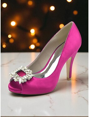 Escarpins à bout ouvert en satin pour femmes avec boucle en cristal - chaussures habillées à talons hauts classiques pour dames, parfaites pour les cocktails et les occasions en soirée
