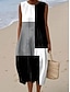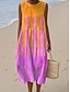 Robe Midi Femme Robe en Lin Robe d'Été Robe Ample A Ligne Vacances Casual Boho Plage Sortie Coupe Lousse Graphique Géométrique Sans Manches Col Ras du Cou Bleu Blanc Jaune Rose Été Printemps