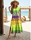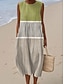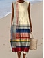 Robe Midi Femme Robe en Lin Robe d'Été Robe Ample A Ligne Vacances Casual Boho Plage Sortie Coupe Lousse Graphique Géométrique Sans Manches Col Ras du Cou Bleu Rouge Marron Vert Été Printemps