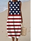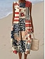 Jour de l'indépendance robe midi en lin patriote pour femmes robe d'été robe à shift robe en ligne vacances décontractée boho plage sortie coupe ample impression géométrique étoiles et rayures sans