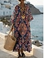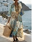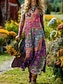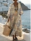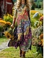 Femmes Robe maxi Robe d'Été Robe trapèze Vacances Occasionnel Boho Plage Sortir Coupe Ample Fleuri Graphique Géométrique manche longue Col en V Bleu Roi Vert Kaki Beige Été Printemps