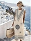 Femmes Robe Midi Robe fourreau Robe d'Été Robe trapèze Vacances Occasionnel Boho Plage Sortir Coupe régulière Graphique Géométrique Sans manches Col Rond Marron clair Kaki Été Printemps