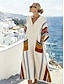 Robe midi femme V en col Longue Manche Kaftan Légère Coupe Ample A Ligne Robe Décontractée Boho Fête Sortie Graphique Géométrique Rayée Longue Manche V en col Cendre Jaune Rose Orange