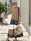 Femmes Robe Longue Maxi Robe Robe Décontractée Robe d'été Robe bohème Mode Quotidien Vacances Week-end Coupe régulière Géométrique manche longue Col en V Noir Kaki Abricot Été