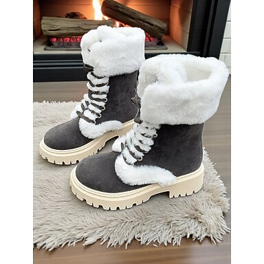 Bottes d'hiver à lacets doublées de fausse fourrure pour femmes - bottes de neige chaudes en daim avec semelle antidérapante pour temps froid et activités de plein air