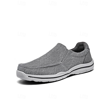 Mocassins gris en toile pour homme – confortables et décontractés, parfaits pour les îles, les croisières, la plage, les voyages et les séjours de villégiature.
