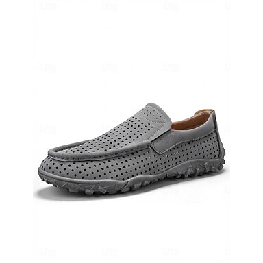 Mocassins gris perforés pour hommes, chaussures de marche confortables, légères et respirantes, élégantes et décontractées, idéales pour l'été, les voyages insulaires et les croisières, ainsi que les soirées en station balnéaire.