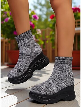 Bottes montantes Flyknit pour femmes, à plateforme et à lacets – Chaussures légères et respirantes, style sportif, décontractées et d'extérieur pour la marche, le quotidien et les voyages