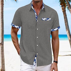 Homme Chemise Chemise en lin Chemise d'été Chemise de Plage Chemise hawaïenne Couleur Unie Vacances Rue Bleu Gris Manche Courte Col rabattu Printemps & Été Vêtement Tenue Patchwork