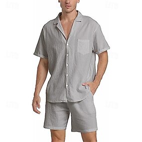 Homme Chemise en lin Deux pièces Ensemble Chemise Et Shorts Shorts en Lin Shorts de plage Set Uni Quotidien Extérieur Plage Col Rabattu Sans manches Été Mode Occasionnel Confortable Vêtement Tenue