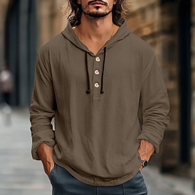 Homme Chemise Chemise en lin Tenue de plage Chemise Boutonnée Chemise à capuche Uni Vacances Occasionnel Blanche Bleu Vert Véronèse Gris manche longue À capuche Été Printemps Vêtement Tenue Boutons