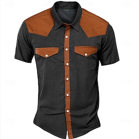 Homme Vache Chemise Western Manche Courte Western Sport en Plein Air Été Col Rabattu Boutonner 2 poches Bleu Noir Beige