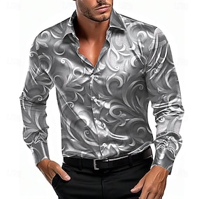 Homme Chemise Chemise en satin Chemise boutonnée Formel Rouge Bleu Gris foncé Gris manche longue Col rabattu Eté Printemps Vêtement Tenue Boutons