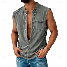 Homme Chemise Chemise Décontractée Chemise Boutonnée Chemise 100% coton délavée à l'acide Noir Vert Claire bleu marine Violet Vert militaire Sans manches Uni Col grand-père Occasionnel Quotidien