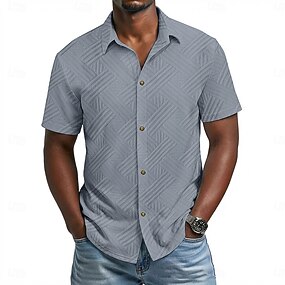 Homme Chemise Chemise Décontractée Chemise Boutonnée Chemise jacquard Noir Blanche Abricot Gris Bleu clair Manche Courte Géométrique Uni Revers Occasionnel Quotidien Jacquard Vêtement Tenue Élégant