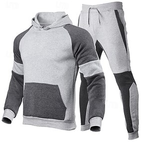 Homme Sweat à capuche Ensemble Survetement Survêtement Ensemble de sweats à capuche Noir Rouge Gris Clair Noir + Gris Gris Capuche Bloc de couleur Cordon 2 Pièces Poche avant Sport & Loisir du