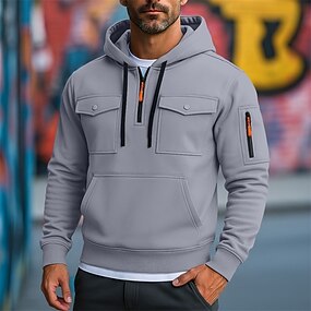Homme Sweat à capuche Sweat à capuche quart zippé Noir bleu marine Kaki Gris Clair Gris foncé À capuche Uni Avec Poches Sport & Loisir Quotidien Fête Polyester Streetwear Basique Occasionnel