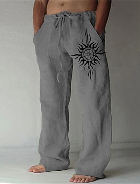 Homme Pantalons en Lin Pantalons Pantalon d'été Pantalons de Plage Imprimé Jambe Droite Graphique Soleil Doux Extérieur Longueur complète Maison Occasionnel Quotidien Mode Streetwear Blanche Bleu