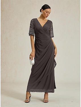 Femmes Robe maxi Robe fourreau Élégant Couleur Unie Manche Courte Col en V Gris foncé Été Printemps Automne