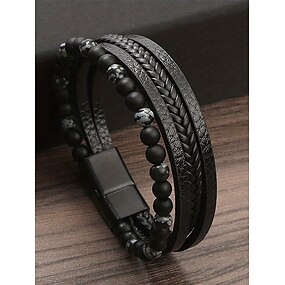 Ensemble de bracelets en alliage et cuir synthétique pour hommes, bracelet tressé multicouche avec fermoir magnétique, bijoux punk tendance pour décontracté, fête et cadeau