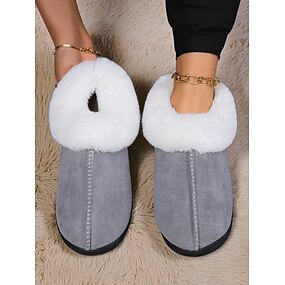 Chaussons chauds doublés en polaire pour femmes avec col en fausse fourrure, chaussures d'intérieur confortables et antidérapantes, pantoufles d'hiver élégantes pour dames &confort de vacances