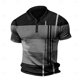 Homme Chemises Polo Gaufre Texturé Occasionnel Vacances Revers Manches courtes Mode Carreaux / Rayé / Chevron / Rond Imprimé Été Dry-Fit Bleu Jaune Rose Claire Rouge Violet Claire Orange Chemises