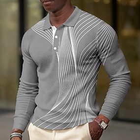 Homme Géométrique Ligne Chemises Polo Gaufre manche longue Polos Chemises à Col Occasionnel Tenue quotidienne Boutons Printemps Automne Hiver Blanche Bleu Gris Claire