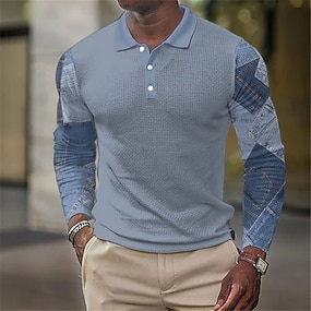 Homme Plaid Chemises Polo Gaufre Chemise de golf manche longue Polos Chemises à Col ancien Occasionnel Vêtements de vacances Tenue formelle Vêtements de festival Boutons Impression 3D Automne & Hiver
