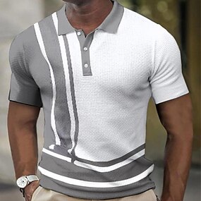 Homme Chemises Polo Gaufre Texturé Extérieur Rue Col Rabattu Manches courtes Sports Mode Rayé Impressions Graphiques Imprimé Boutonné Été Printemps Coupe régulière Jaune bleu marine Vert Gris Bleu