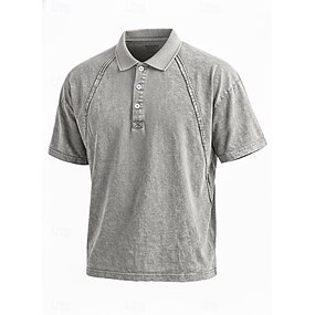 Homme Polo Chemise 100% coton délavée à l'acide Occasionnel Fête Revers Sans manches Mode Basique Uni Vintage Affligé Été Printemps Bleu Rose Claire Violet Vert Gris Polo