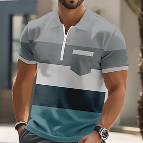 Homme Rayures horizontales Polo Manche Courte Polos Chemises à Col Vêtement décontracté de travaile Extérieur Athleisure Fête Avec Poches Impression 3D Polo à fermeture éclair 1/4 Printemps & Été