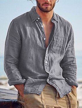 Homme Chemise Chemise en lin Chemise d'été Tenue de plage Chemise Boutonnée Uni Occasionnel Quotidien Noir Orange Gris manche longue Col Rabattu Été Printemps & Été Vêtement Tenue Boutonné