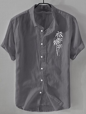 Homme Chemise Chemise en lin Chemise d'été Tenue de plage Chemise Boutonnée Cocotier Vacances Fête Noir Blanche Violet Kaki manche longue Col montant Été Printemps Vêtement Tenue Boutons