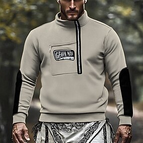 Homme Sweat-shirt Sweat-shirt quart de fermeture éclair Noir Vert Véronèse Kaki Café Gris Col montant Uni Avec Poches Sport & Loisir Quotidien Fête Polyester Streetwear Basique Occasionnel Printemps