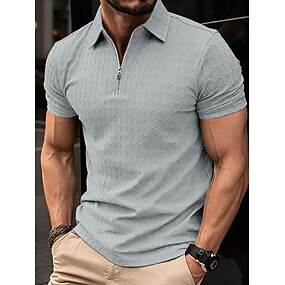 Homme Polo à fermeture éclair Texturé Occasionnel Fête Revers Zip quart Manche Courte ancien Mode Uni Quart de zip Été Coupe régulière Bleu Ciel Noir Blanche Gris Polo à fermeture éclair