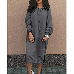 Femmes Robe Longue Maxi Robe Robe à Capuche Robe Décontractée Robe d'Hiver Élégant Mode Moderne Quotidien Extérieur Robe d'Hiver Coupe Ample Uni manche longue À capuche Noir Rose Claire Vin Vert