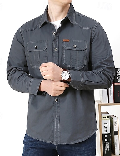 Homme chemise cargo Chemise de randonnée manche longue Col Rabattu Top Extérieur Respirant Printemps Automne Coton Noir Café Grise Chasse Entraînement Voyage