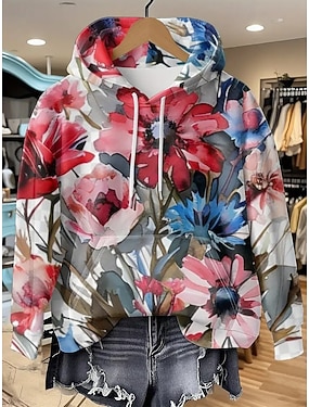 Sweatshirt à capuche pour femmes graphique décontracté manches longues tops réguliers vêtements de fête et de soirée vêtements de rue quotidiens rouge printemps automne hiver