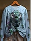 Pulls Sweatshirt pour femmes Imprimé Sorcière Graphique Décontractée Manches Longues Col Ronde Hauts Normaux Rue Quotidien Décontracté Imprimé Noir Blanc Vert Clair Bleu Orange Printemps Automne Hiver