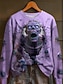 Pull femme Chat noir Graphique Chat Décontracté Manches longues Col rond Hauts réguliers Quotidien de rue Imprimé Violet Orange Gris Printemps Automne Hiver