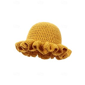 Chapeau à seau en crochet avec volants pour femmes – Cap de festival tricoté multicolore arc-en-ciel pour le carnaval les parties déguisées et le style boho chic